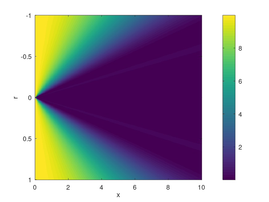 The important result is that the wave diverges to infinity and becomes unfocused very quickly after leaving the aperture, which can be seen in the plot, but can also be shown analytically (if we take the limit as we have for all ). The corresponding formula for its divergence is given by: